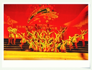 7月19日,全州中小学艺术展演活动落幕。吉大师院附小在本次展演活动取得可喜的成绩:舞蹈《五彩凤凰》获小学组一等奖,原创诗歌朗诵《最美好的未来》获小学组演讲类第一名,器乐合奏《卡门序曲》获小学组器乐类第一名,学校荣获“最佳组织奖”、“精神文明奖”。图为7月19日,该校舞蹈节目《五彩凤凰》演出时的情景。 彭 彪 肖雪峰 摄