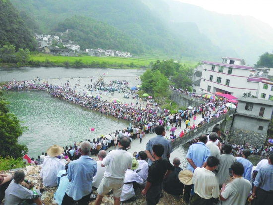 河滩上、河岸边、山坡上,人山人海。