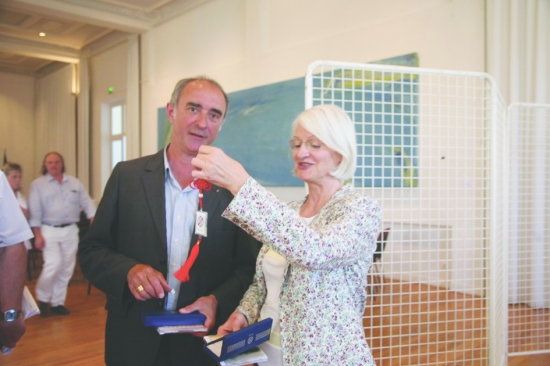 希农市民细细玩赏代表团赠送的小礼品“万事大吉”车饰缀物