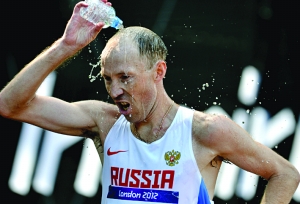 8月11日,俄罗斯选手谢尔盖·基尔佳普金在比赛中冲凉。当日,在2012伦敦奥运会男子50公里竞走比赛中,谢尔盖·基尔佳普金以3小时35分59秒的成绩获得冠军。