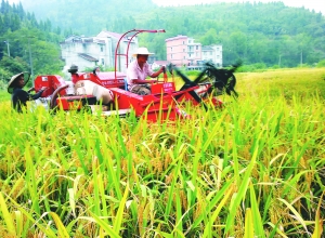 9月1日上午,一台小型收割机正在泸溪县达岚镇达岚坪社区帮村民收割中稻。这是该镇龙溪口村企冲组打工返乡青年黄明辉日前在镇内新购的小型收割机。连日来,该机在镇内车头、都用、麻坪等村组稻田进行收割作业后,因其省工时、省劳力、省工钱、脱粒又干净等等好处,深受当地农民青睐。