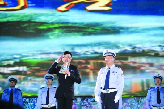 汪涵与矮寨交警互动 本报记者 田宏贵 摄