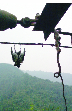 10月3日下午4点,龙山县10千伏红塔线出现接地现象,迟迟不能自动解除。第二天找到线路接地故障点时,红岩供电所抢修员工哑然失笑,禁不住用手机拍下了眼前的奇异景象。 10月4日,副所长彭勇和员工晏学华来到故障点,晏学华登杆近看,惊讶地发现电线上挂着一只鸟,还有一条烧得黑乎乎的乌梢蛇。彭勇连用手机拉近拍下来,说:“维护线路这么多年,在线上看见鸟或蛇不稀奇,同时看见两样还是第一次。”两人很快将蛇挑开,将故障处理,恢复送电。坡上放牛的一个老人对他们说:昨天前面那座山顶曾经闪了好大的弧光,想来,这弧光是蛇引起的。 回来的路上,两人猜想事情的经过:蛇在草丛中饥肠辘辘,猛然看见一只小鸟在线上欢唱,便悄悄沿着拉线爬上电杆,小鸟全然不觉危险的降临。蛇仰起头张开大嘴冲向鸟儿,不想在接触的瞬间,蛇鸟俱焚。 文/田良东 图/ 彭 勇 |