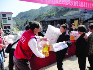 10月18日上午,香港爱德基金会来到凤凰县林峰乡明星村开展物资捐赠活动,向当地受灾群众送去棉絮50床,被套50件,金龙鱼油50桶,大米209袋,浓浓的手足情,使受灾群众倍感温暖。