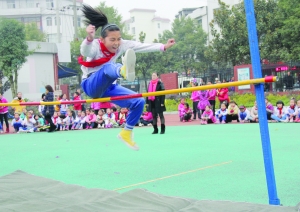 11月16日,龙山县第五小学学生正在进行跳高决赛。11月13日至16日,该校举行第四届冬季田径运动会,共有4300余名学生参赛,先后有37人次打破了校运会纪录。