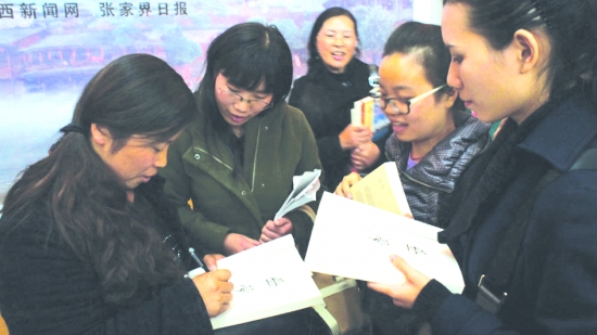 九妹(左一)在《叠梦》首发式现场为粉丝签名。