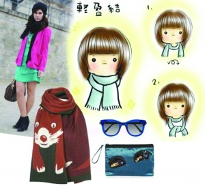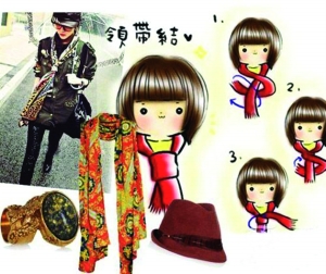 很简单实用并且很容易出效果,这种打法平常也很容易搭配,很有复古的味道,英伦风必备围巾打法,或是文艺小青年装扮也可以选择。 |