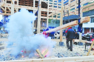 图/文 张 谨 周玮玮 颜家生 李 音 1:保靖县葫芦镇苗寨 2:鞭炮声中,掌墨师傅唱着鲁班上梁歌,主梁被徐徐抬上 3:偷梁习俗,选树干粗壮挺直的杉木作新房中柱主梁。半夜砍树前,木匠师傅先以酒、 肉祭祀,树倒的方向很有讲究,一定要设法使树倒向东方,系上红布以示吉利 4:房子主架建成后,主人宴请宾朋好友,客人送得礼品挂在新房柱子上 中国北方建筑,因地势与气候的原因,大多是宏大与对称布局,砖石为主。湘西地处武陵山脉,建房因山而建,平坦之地,用做农田,山脚河坎之地,成了建房首选。地处山区,潮湿多雨,山民历来喜建木房,五柱八挂的穿斗式木结构房屋是湘西苗族山区中使用最多的一种。我们采访小组全程记录了保靖县葫芦镇米塔村仁伍寨洪荣臻家建房全过程。选择屋场、备料、晒干、解料,工匠们按照掌墨师傅在每根木料上所画的鲁班字,进行锯、砍、刨、凿,制作整栋房屋的构件。整个建房的图纸画在一根长长的竹片(称丈篙)上(房子建好后,这根竹片就放在房子的主梁下面,相当于建房图纸档案。五柱八挂的建筑需要:20根柱头、32个挂子,47根嵌,16块跳首、24块排坛。 房子地面整平后,用石登岩铺在屋基蓑衣岩上,木匠师傅把建房的四排“排扇”先安装好,然后全村的男人齐心协力把木排从一边竖起,一边人用梯子与柱子用力去推,一边人绳子拉,竖好后,众人用木槌槌紧木排与房梁的榫头。架好后,房顶铺上木条,盖上青瓦,做门窗的师傅然后安装木门窗。苗族建筑木房为全木结构,木柱、木梁、木壁、木窗、木门、木地板。榫头处全部用硬杂木钻眼槌紧。“飞檐”悬出正屋,造型舒展向上房屋上的挑梁,呈弯曲状,是在选择木材时就选择那种乘山势而长的树木,有美学、力学的双重美感,整个房屋架在石登岩上,离地一尺,通风防潮。整个房屋木板与柱子刷上桐油防腐防虫。 房间分两层,下层左为客房,中间堂屋,右间为会客处,建有火坑,上方吊有一炕架,上面挂放腊肉、豆干、辣椒等可供熏食之物。火坑周围摆放的都是木制矮凳子。乡人好客爱热闹,家中常有邻里客人围坑而聚,烤火、喝茶、闲话,兴致所至,架起鼎锅,烹煮腊味豆腐酸菜一锅吹,把酒共饮。常年烟熏,使房屋梁柱、板壁免遭虫蛀之患,经年耐久,一般可达200年左右。一栋100平方米的苗家建筑,费用大约18万左右。 建完后,在主房右边搭一侧房,堆放杂物。周围种植树木,房前修一块平地,农忙时晒谷纳凉,闲时打鼓对歌。 |