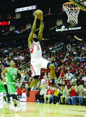 12月15日,哈登在比赛中滑翔扣篮。当日,NBA常规赛继续进行,火箭队主场以101比89战胜凯尔特人。火箭队员哈登得到21分、5篮板、5助攻,林书豪只得到5分、3篮板、7助攻。