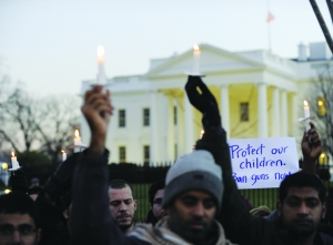 12月14日,在美国首都华盛顿白宫外,民众举行烛光集会,悼念当日康涅狄格州桑迪胡克小学枪击案遇难者,呼吁控制枪支。