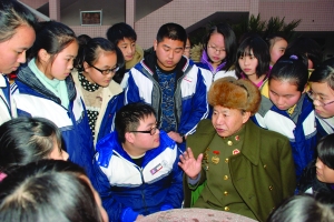 12月18日,参加过抗美援朝战争的志愿军老战士、原军事博物馆副师职干部李代相大校,回到阔别50年的故乡泸溪县达岚镇,感受家乡的巨变,并参观了白沙新城,还来到泸溪县一中给高一全体学生进行革命传统教育。他用自己亲身的经历,生动地讲述他所在的47军416团特功5连,坚守严岘山、夜袭美军救战友,一人击毙150多名敌人等英雄故事,教育学生铭记历史,珍惜时光,好好学习,报效祖国。图为一中学生围着李爷爷,听革命传统故事。 通讯员 莫伯芳 摄