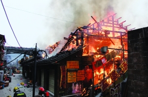 1月3日,凤凰古城孟婆汤酒吧突发火灾,经过消防官兵及时扑救,大火被扑灭。火灾没有造成人员伤亡。现场消防官兵初步判断,火灾起因可能是电力线路故障所致。消防部门特别提醒,近期我州遭遇冰冻雨雪天气,广大城乡居民在烤火时要提高防火意识和加强防火措施,避免火灾事故发生。 黄 忠 摄