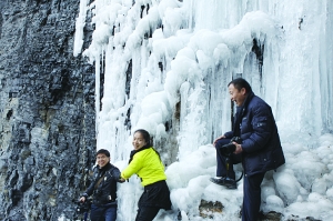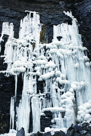 1月13至14日,在保靖县夯沙乡吕洞山,笔者意外发现,山脚的一处石壁变成冰挂的世界,一大片冰凌自然形成的天然巨型“冰瀑”尽收眼底。 距离1月4日保靖县今年来的首场降雪已有10来天,加上连续几天气温上升,这幅美妙的“冰瀑”逐渐融化,不过,这幅天然巨型“冰瀑”依然蔚为壮观。据目测估计,整座“冰瀑”作品足有12米高,8米多宽,远看如同一幅瀑布图,近观仿佛一幅山洞门帘,有的冰挂像一朵朵白云,抑或浪花,有的又像一根根晶莹剔透的水晶柱,形成人间的银装世界。 夯沙乡党委书记王胜介绍,在此之前,已经有400多名来自吉首、花垣、凤凰等游客慕名前来驻足参观这幅天然巨型“冰瀑”。 易 果 张承印 摄 |