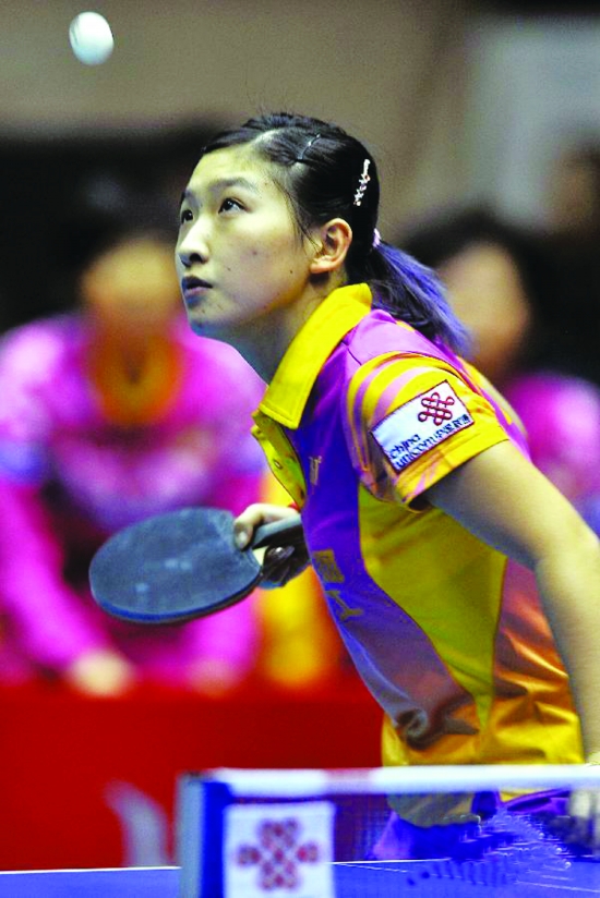 1月25日,山西大土河队球员刘诗雯在比赛中发球。当日,在中国乒乓球超级联赛女子团体决赛第三回合比赛中,山西大土河队主场以3比1战胜八一冀中能源队,从而以2比1的总比分夺得冠军。 新华社记者 詹 彦 摄