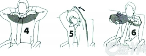 如今的主题,当然就是回家过年。对于试图投身春运洪流的人们来说,这不仅仅是一次身体的考验,也是一次精神的挑战。 长时间坐在座位上,会造成人们的关节和肌肉的酸痛,加剧旅途的疲倦。 向大家介绍几种简单的拉伸动作,最适合在无聊又疲惫的旅途了。 (李 召) ①手臂向前伸直,手指向上,弯曲手腕,保持10~12秒,重复2次。 ② 将双肩向耳朵方向耸起,直至颈部和肩膀产生轻微的紧张感,保持5秒钟后,肩膀自然下垂。 ③右肩缓缓向下运动,同时头部微微左倾,左耳朝向左肩,保持5秒钟,换另一边重复这个动作。 ④双手交叉,置于脑后,肘部向外伸展,上半身保持放松但不要倾斜,保持4~5秒钟后放松。 ⑤双手举过头顶在脑后交叉,用一只手握住另一只手的肘部,轻轻拉动产生拉伸感,保持15秒钟。 ⑥双手交叉,然后双臂向前伸直,双掌向外翻出,保持20秒钟,重复2次。 ⑦双手交叉,双臂向头顶上方伸直,手掌向上翻出,保持10秒钟,重复3次。 ⑧双手放在支撑物上,双腿一前一后站立,前脚弯曲指向正前方,后腿伸直。将髋部缓缓前移,腰部保持正直,后脚跟不要离地。保持10~15秒钟后换脚重复这个动作。 ⑨双脚分开比肩稍宽,双脚脚尖指向正前方,右膝微曲,将左髋向右膝方向下移,保持5~15秒钟后换脚重复这个动作。 注:阴影部分为拉伸到的部位,如感到不适或疼痛,请立即停止。 |