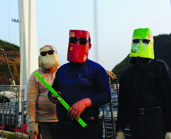 面具 (2012年3月26日) 矮寨大桥的建桥电焊工为操作方便,自制了防护面具。5年来,几千名建设者在吉茶高速上奋斗着,大桥建成了,他们的面孔与名字却模糊了。