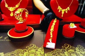 辽宁省沈阳市一家金店的工作人员在整理黄金饰品(2012年7月27日摄)。