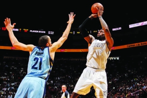 3月2日,NBA热火队队员詹姆斯在比赛中后仰跳投。当日,NBA常规赛继续进行,迈阿密热火主场98比91战胜孟菲斯灰熊豪取13连胜,距离队史最长连胜纪录还有1场差距(2004年12月6日到2005年1月1日,热火队14连胜)。当场比赛,詹姆斯与高命中率告别,14投仅4中,但他投中关键三分,全场得了18分、10次助攻和8个篮板。韦德得了22分8次助攻,波什13分、6个篮板和6次助攻。灰熊八连胜终止,加索尔拿下了24分9个篮板,兰多夫14分9个篮板。