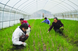 2月28日上午,永顺县吊井乡吊井村,菜农正在大棚内给香葱除草。 近年来,该乡党委、政府大力调优农业产业结构,扶持种植大户开发香葱产业400多亩,错开与本地传统香葱上市冲突季节,抢占种植和销售制高点,并带动其他村组农民逐步扩大种植范围和规模,共享产业发展致富成果。 吴 华 摄