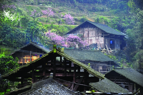 苗族传统的五柱八挂木房是中黄村的主要建筑形式。
