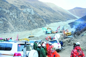 习近平李克强指示 要求全力展开救援 尽最大努力抢救被困人员 83人被埋 新华社北京3月29日电3月29日晨,西藏自治区拉萨市墨竹工卡县境内,中国黄金集团公司下属的华泰龙矿业开发有限公司甲玛矿区发生大面积山体滑坡,据初步统计,83名工人被埋。党中央、国务院对此高度重视,正在国外访问的中共中央总书记、国家主席、中央军委主席习近平,中共中央政治局常委、国务院总理李克强,分别作出重要指示,要求全力展开救援,尽最大努力抢救被困人员,防止次生灾害,并抓紧核实被困人数,查明滑坡原因,做好各项善后工作。刘云山、张高丽、刘奇葆、郭声琨、王勇等中央领导同志也作出批示。 目前,西藏自治区党委、政府和有关企业正在全力组织抢险救援,安全监管总局、国土资源部、国资委有关负责同志已率工作组赶赴现场指导救援工作。 3月30日,救援人员在塌方现场展开救援。 针对西藏墨竹工卡县发生的严重山体滑坡灾害,国家减灾委、民政部已紧急启动国家三级救灾应急响应。截至3月30日10时,事故现场暂未找到幸存者或遇难者遗体,相关救援工作正在紧张进行。 3月29日清晨6时左右,位于中国黄金集团华泰龙公司甲玛矿区内的墨竹工卡县扎西岗乡斯布村普朗沟泽日山发生山体塌方,塌方长3公里,塌方量200余万方。据初步统计,83名工人(藏族2人,其余均为汉族,多为云贵川等内地职工)被埋。目前,西藏自治区党委、政府和有关企业正在全力组织抢险救援。 新华社 张 权 摄 |