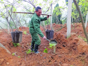4月6日,永顺县松柏镇坝古村民向仍贵在为猕猴桃施用农家肥,当前,正是春耕春种好时节,该镇村民就地取材,利用农家肥作底肥、培育苗,降低春耕成本,提高生产效率。