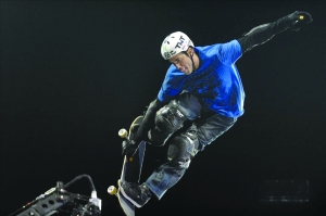 4月18日,巴西选手鲍勃·伯恩奎斯特在滑板超级U台比赛中。当日,世界极限运动大赛在巴西伊瓜苏开幕,在接下来的四天内,来自全球各地的200余名选手将陆续展开滑板、摩托车、小轮车等多项赛事的角逐。 新华社记者 翁忻旸 摄