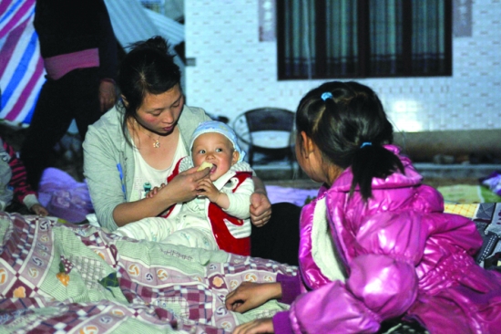 4月20日,芦山县龙门乡居民在临时搭建的避震棚内休息。 当日,四川雅安芦山县发生7.0级地震。其中芦山县的龙门乡、宝盛乡、太平镇三地受灾最为严重。 新华社记者 刘金海 摄