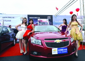 4月19日,湘西地区2013春季大型车展开幕。为吸引眼球,一家汽车经销商正在自己的展台前进行车模秀。本届车展吸引了15家汽车经销商参加,展出为期3天,于4月21日结束。