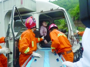 本报讯(记者 杨继东 通讯员 石敦华 姚捷)4月19日,常吉高速鸡公脑隧道附近,两车相撞,一被困车内的女子被赶到的消防人员及时救出。 当天17时30分,常吉高速鸡公脑隧道口往吉首方向,两车相撞,一人被困。接到报警后,吉首消防大队出动两台消防车,15名官兵赶赴现场救援。17时45分,消防人员到达看见现场一片狼藉,一辆湘西电业局计量中心的五十铃货车(湘U08237)停靠在护栏边,碎玻璃和车上的零部件散落一地,副驾驶室内一女子被死死卡住无法动弹,不停地发出痛苦的呻吟。 情况危急,消防人员马上展开救援行动,利用液压扩张器将女子的右脚先取出,然后使用破拆工具把副驾驶车门拆开。20分钟后,女子被顺利救出,抬上担架,送往医院进行救治。 |
