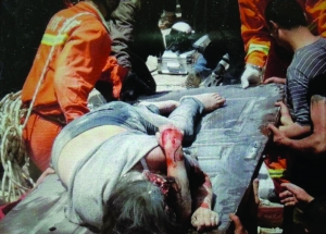 当日,在地震重灾区四川省雅安市芦山县龙门乡五星村九组,雅安市消防支队特勤中队队员将一名被地震废墟掩埋的母亲救出。据现场救援人员称,被救出时,孩子在母亲怀中;经医生检查,母亲有心跳,其孩子已经去世。 新华社 廖中文 摄
