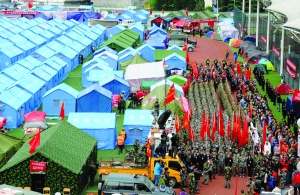 当日,社会各界为四川芦山“4·20”7.0级强烈地震遇难者致哀。