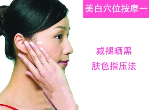 用食指及中指的第二节位在耳背的凹下位置按压,每次按三秒,做五次。