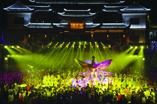 凤凰古城文化广场举行的苗家篝火宾客联欢专场演出,吸引了近万名当地居民和国内外游客齐聚于此。
