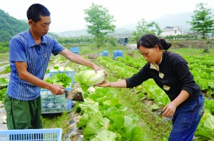 去年,打工返乡的余山青夫妇种植10亩“春大姜”夏季青白菜,错开与本地蔬菜上市冲突季节,提前批发上市,争先抢占到种植和销售制高点,赢得最佳商机。每天黎明,她就和丈夫开着三轮车将白菜送往县城菜市场,年收入10多万元。 吴 华 摄
