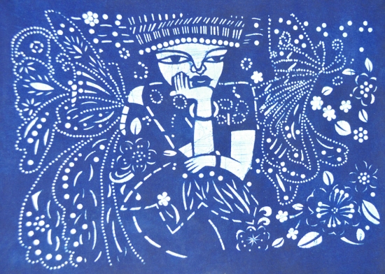 《蝶恋》蓝印版画 姚 莎 梁芷晴 (指导老师 田卿)