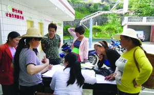 5月下旬,野竹坪镇开展“关爱育龄妇女,情系生育关怀”活动,专门安排车辆接送所辖6个行政村摸底调查的123名育龄妇女到镇计生所接受免费孕前检查,患有妇科常见病的,免费或低费治疗。图为5月21日,计生所工作人员正在进行孕情信息登记。