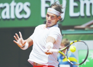 6月7日,纳达尔在比赛中回球。当日,2013法网男单半决赛在法国巴黎进行,赛会七冠王纳达尔最终以6-4/3-6/6-1/6-7(3)/9-7击败德约科维奇,再次粉碎了塞族球王的全满贯美梦,也拿下两人第35次对话的胜利。第八次闯入法网决赛的纳达尔将在决赛中遭遇费雷尔。 (据新华网)