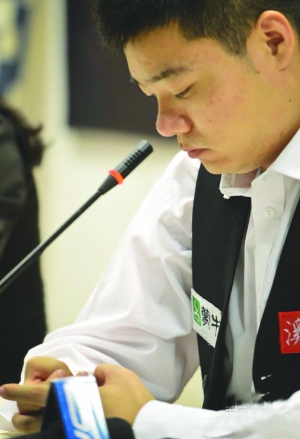 6月14日,中国选手丁俊晖在比赛后出席新闻发布会。当日,在2013年世界斯诺克巡回赛宜兴公开赛正赛第四轮比赛中,丁俊晖以2比4负于苏格兰选手麦克马努斯,无缘八强。