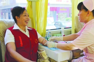 6月14日早上10点,无偿献血志愿者姚云仙正在献血,为特殊的节日献上自己的礼物。当天是世界献血者日,今年的主题为“每一份献血都是生命的礼物”。我州近年来大力推进义务献血工作,无偿献血志愿者在推广无偿献血理念、积极帮助用血紧张的病患解决用血困难等方面发挥了重要作用,推进了我州医疗事业的发展。 (周 堃 摄)
