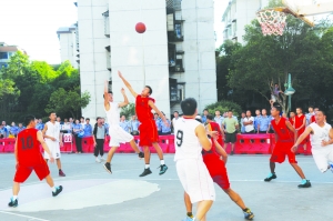 7月11日,泸溪县消防大队代表队队员(红色球服)与该县公安局白沙派出所代表队队员在比赛中争球。当日,该县公安系统2013年度篮球联赛开幕。该县武警、消防、交警等8支代表队近80余名篮球爱好者参赛。此次联赛为期近四个月,初赛实行双循环赛制,复赛(前四名)实行交叉淘汰赛制,比赛对前四名进行奖励,并设有组织奖及道德风尚奖等奖项。