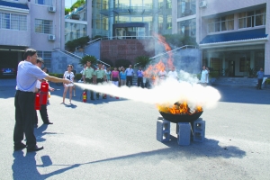酷夏高温天气到来,为提高机关干部职工消防安全意识和能力,7月12日上午,州纪委监察局机关举行消防知识培训及灭火实战演练。图为该局机关干部正进行灭火演练。