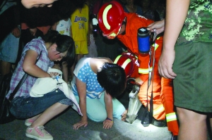2013年7月24日9时许,凤凰县南华桥桥头一少女左腿被路边排水沟卡住,无法动弹。凤凰消防大队接到报警后,立即出动赶往现场。9时05分,消防官兵到达现场, 110巡警正在维持秩序,少女在同伴的搀扶下,单膝跪在地上,表情十分痛苦。消防官兵利用液压扩张器、多功能铁挺等救援工具经过15分钟成功将少女左腿从排水沟两石板缝隙中取出。经检查,少女左腿擦伤了点皮。