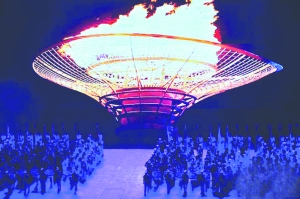 8月16日,第二届亚洲青年运动会在南京拉开帷幕。 图为大屏幕上显示亚青会圣火熊熊燃烧。 本届亚青会共设有游泳(含跳水)、田径、壁球、击剑、举重、篮球(3人制)、乒乓球、足球、手球、柔道、跆拳道、羽毛球、网球、橄榄球(7人制)、高尔夫和射击共16个大项122个小项,共有来自亚洲45个国家和地区的2417名运动员参赛。