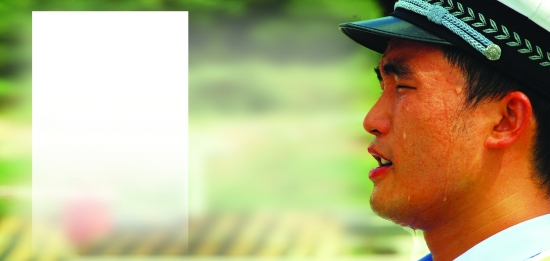 满脸是汗的民警。