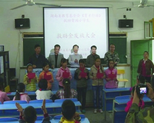 9月4日,湖南省教育基金会“育才行动”救助贫困小学生救助金发放仪式在泸溪县白羊溪中心完小举行,首批16名家庭贫困学生得到每人1000元的爱心资助。 袁绍仁 杨珍霞 摄
