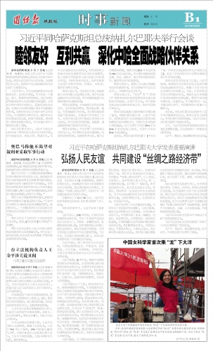 睦邻友好 互利共赢 深化中哈全面战略伙伴关系