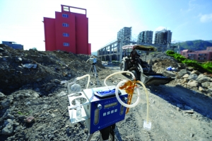 9月12日,乐清市环保部门在北白象镇第九小学新校区进行大气采集监测。