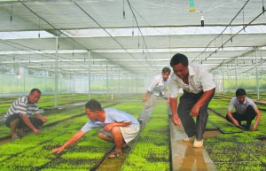 花垣县为鼓励农民发展特色种植业,在该县花垣镇蚩尤村建设工厂化育苗基地,实行反季节育苗和集约化管理,使原本只宜在高寒山区种植的珍稀植物玛卡在该县落户、生根,填补了湘西中高寒海拔贫困山区农业产业化的空白。 张耀成 摄