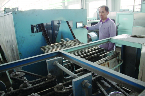 农民发明家刘正权正在操控自己所研发的生产线。